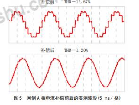 下表給出了中頻電爐部分實測數(shù)據(jù),表中數(shù)據(jù)很清楚地表 明,采用該補償方法能夠很好抑制網(wǎng)側電流的諧波。